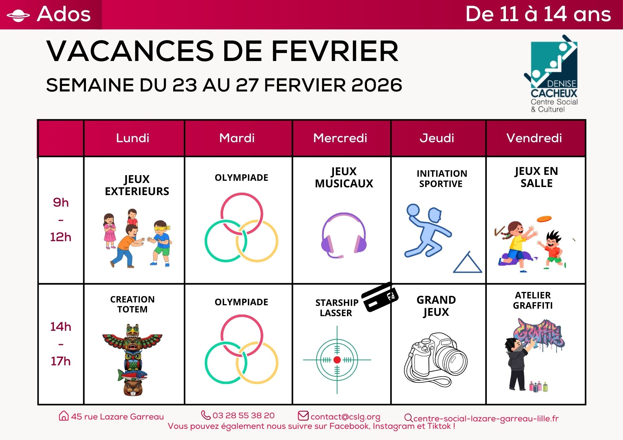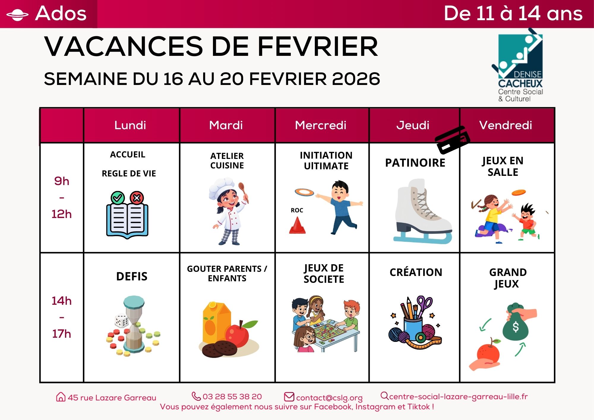 Contactez l’accueil du Centre Social au 0328553820